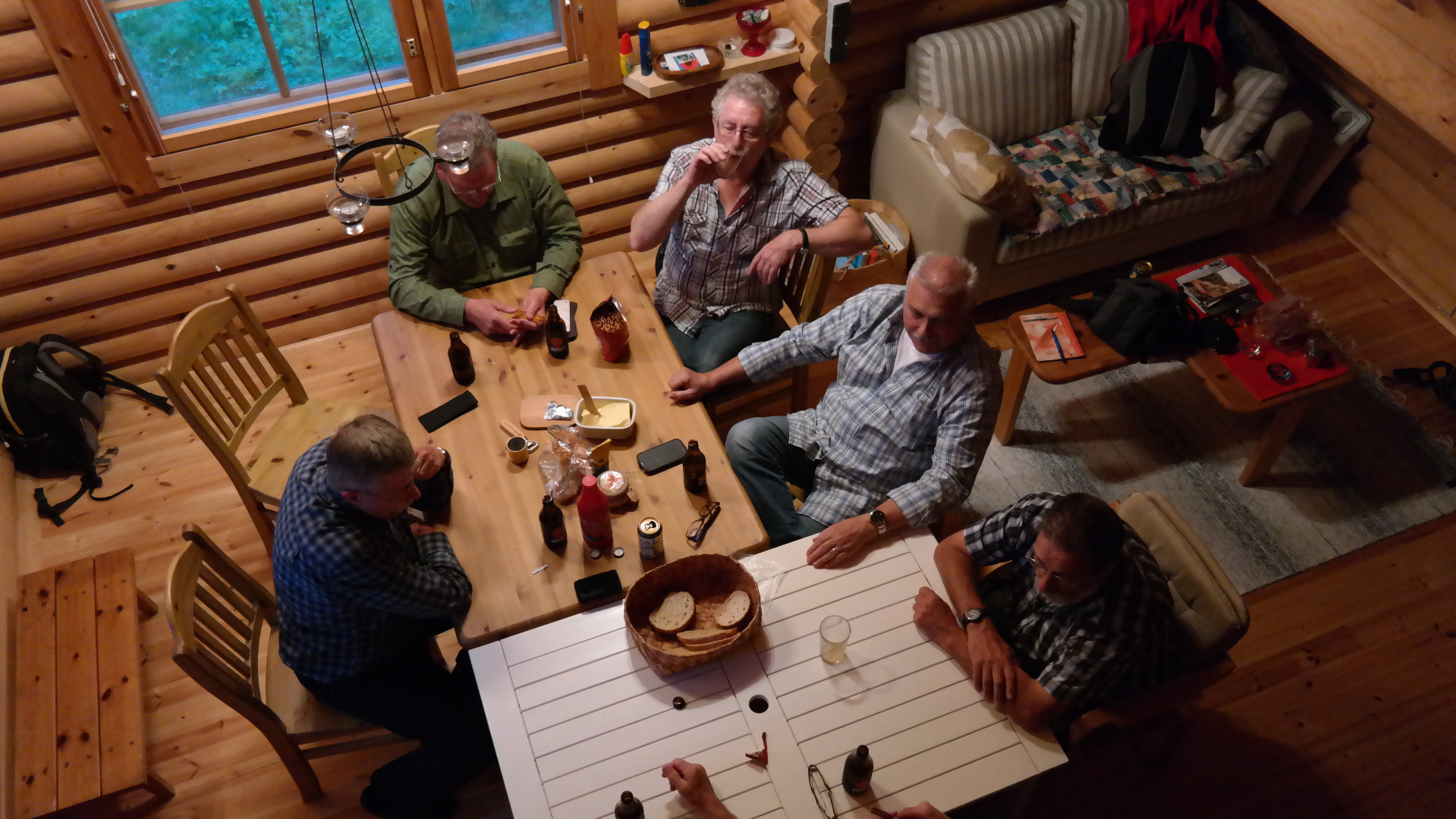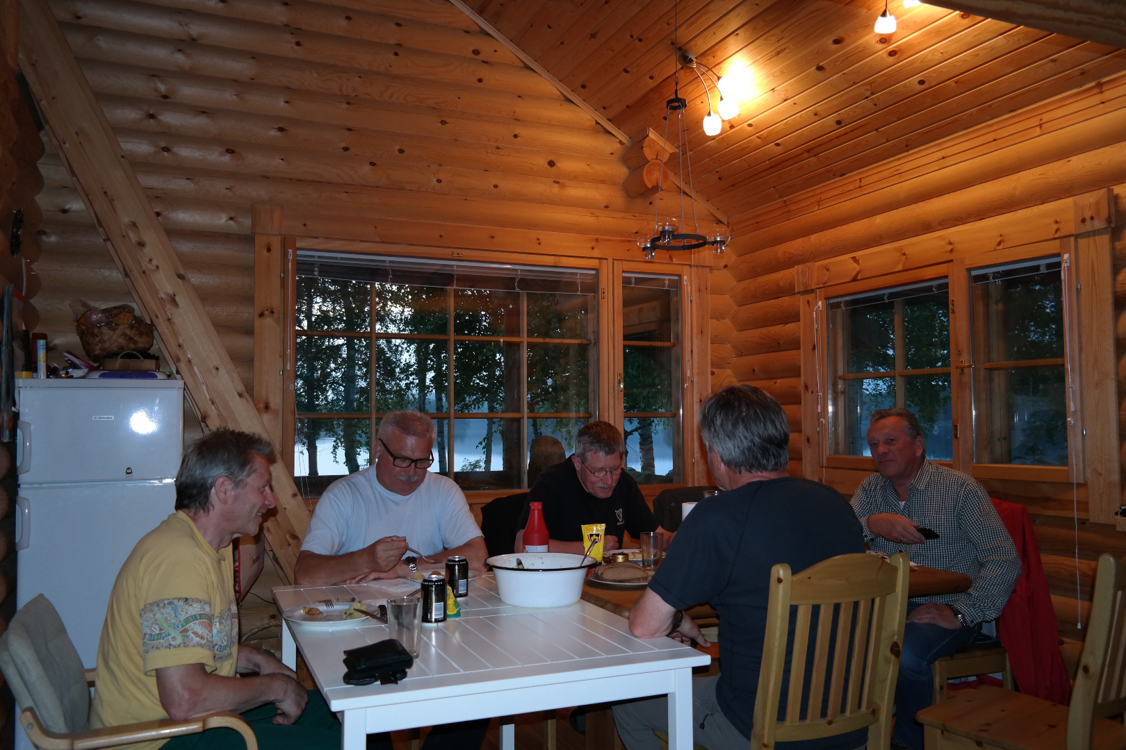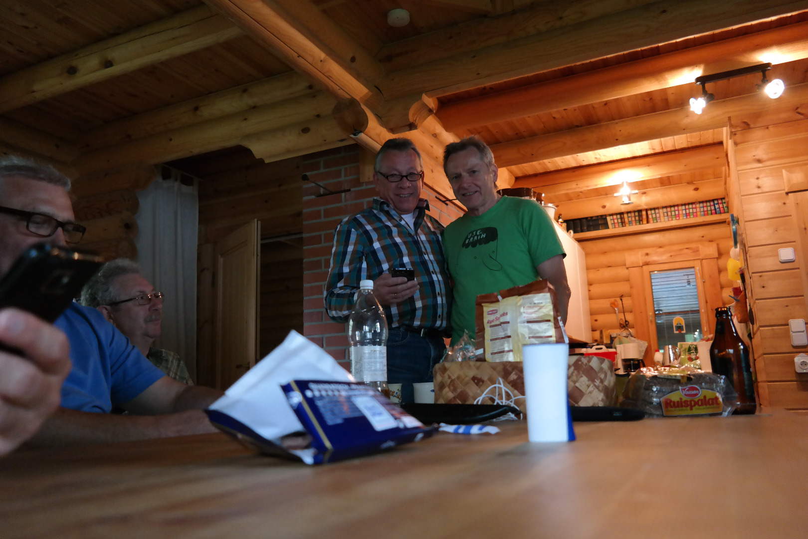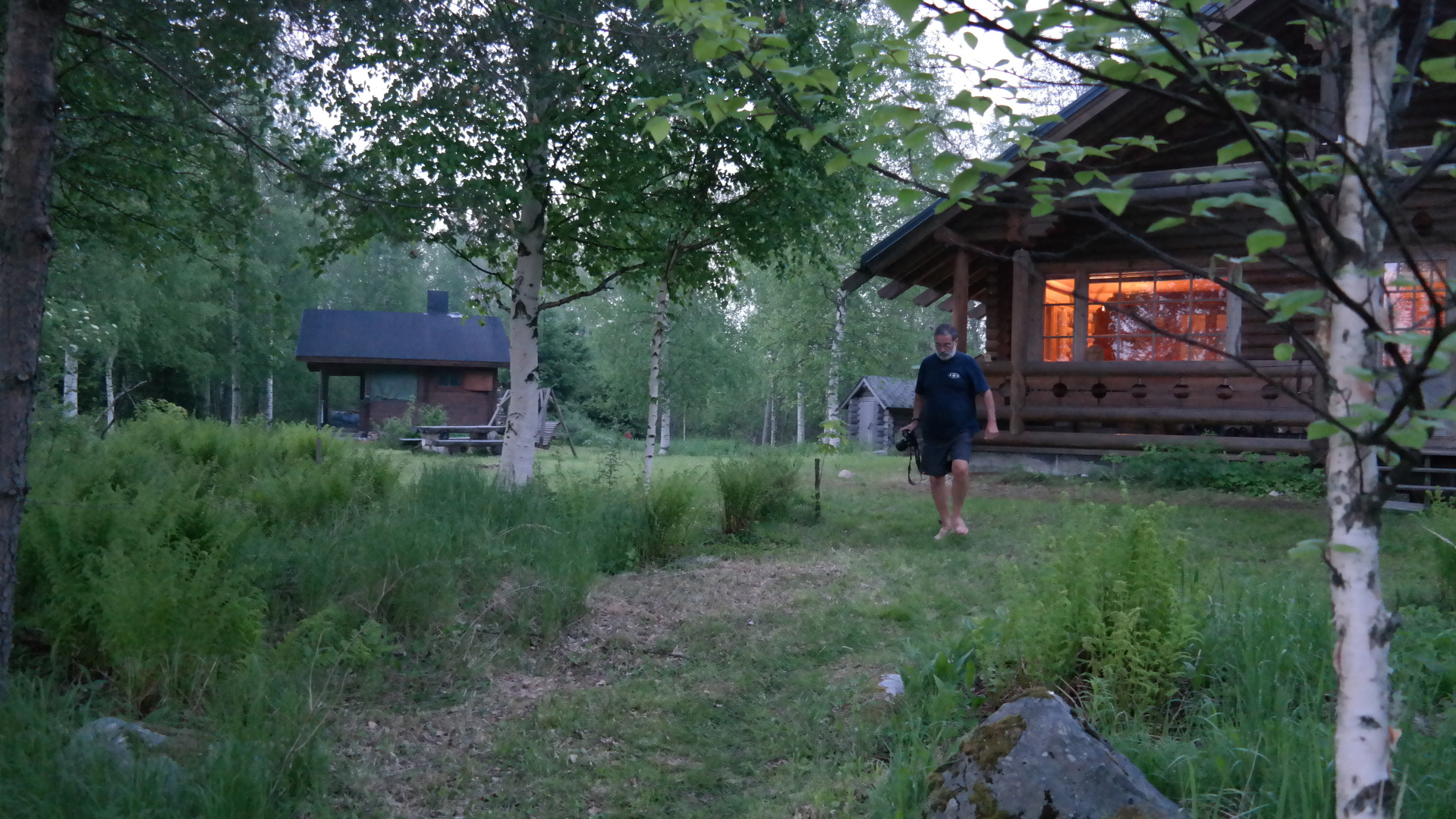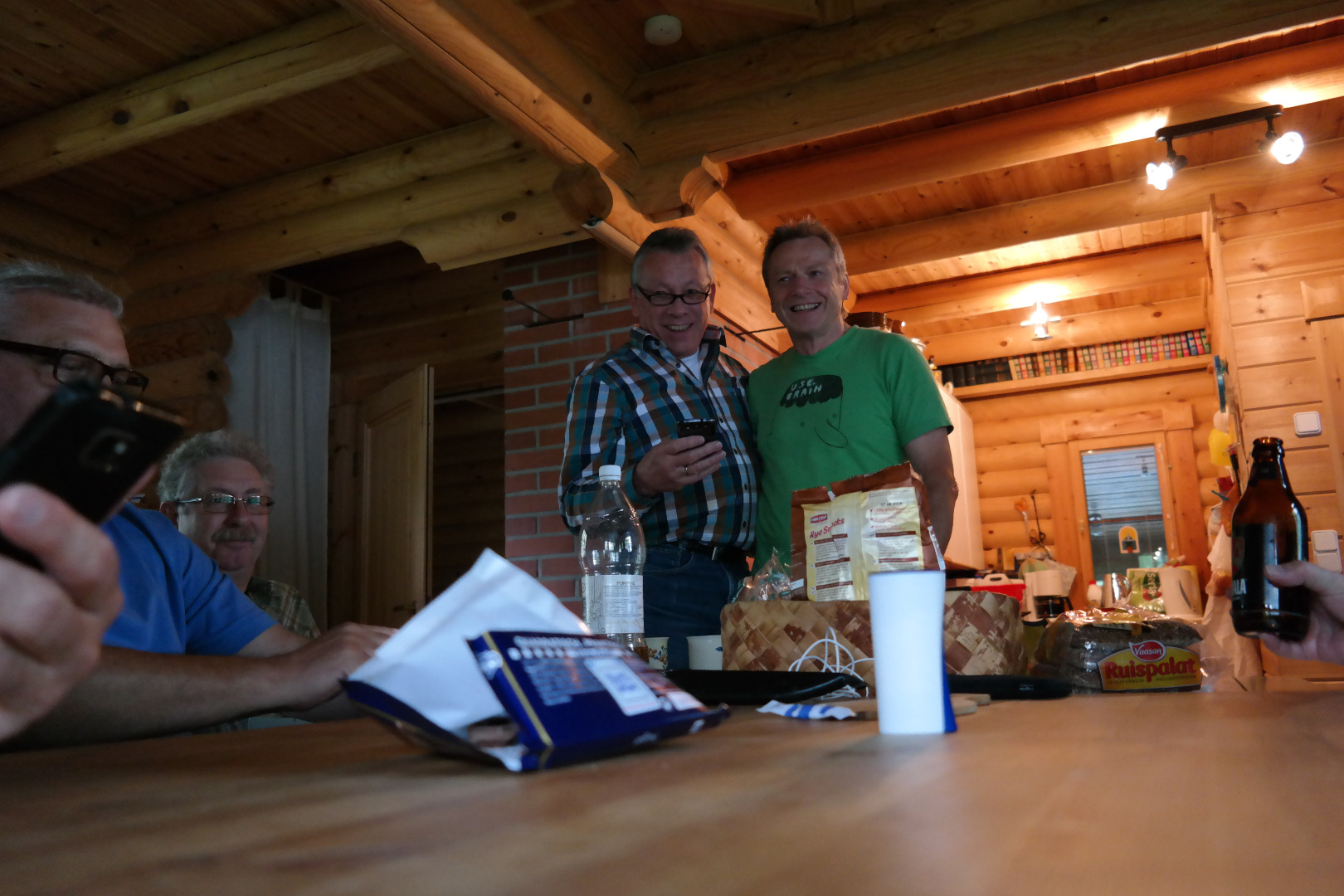 Wahnsinn, diese Reise, die uns Norbert (Fred) organisiert hatte. Von Frankfurt ging es jeweils mit dem Flugzeug zunächst bis nach Helsinki und anschließend weiter nach Joensuu. Dort wurden wir von unserem Gastgeber (Hans der Große) mit zwei Autos auf seine Halbinsel (Ahvenlahti) mit zwei großen Hütten gebracht. Für unseren Aufenthalt hatten wir ein Auto zur Verfügung, da der nächste Lebensmittelladen mehr als 20 km weit weg war. Darüber hinaus hatten wir zwei Ruderboote, mit welchen wir eine weitere Halbinsel unseres Gastgebers in etwa 20 Minuten zu einem Grillabend erreichten.