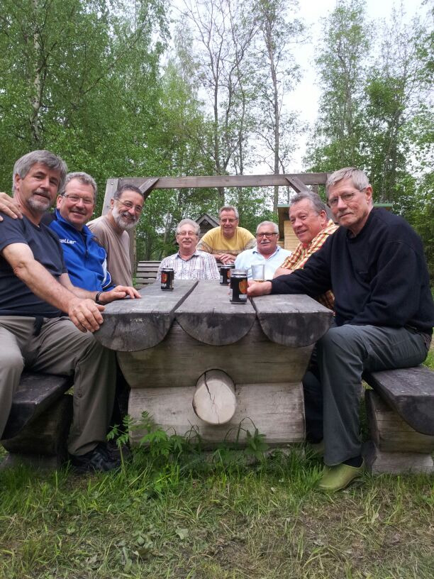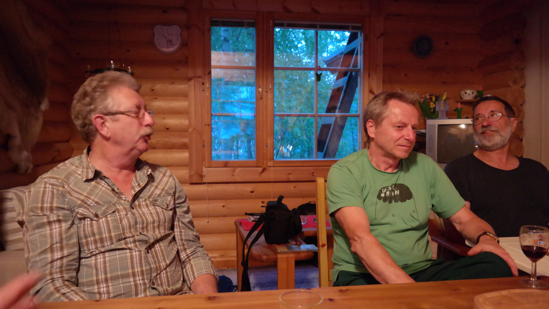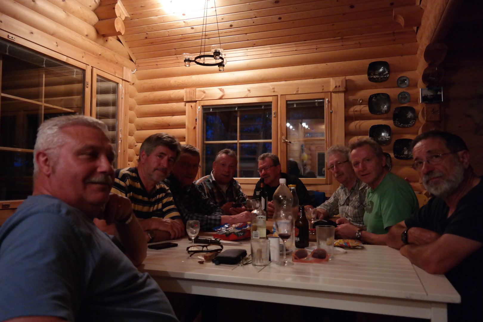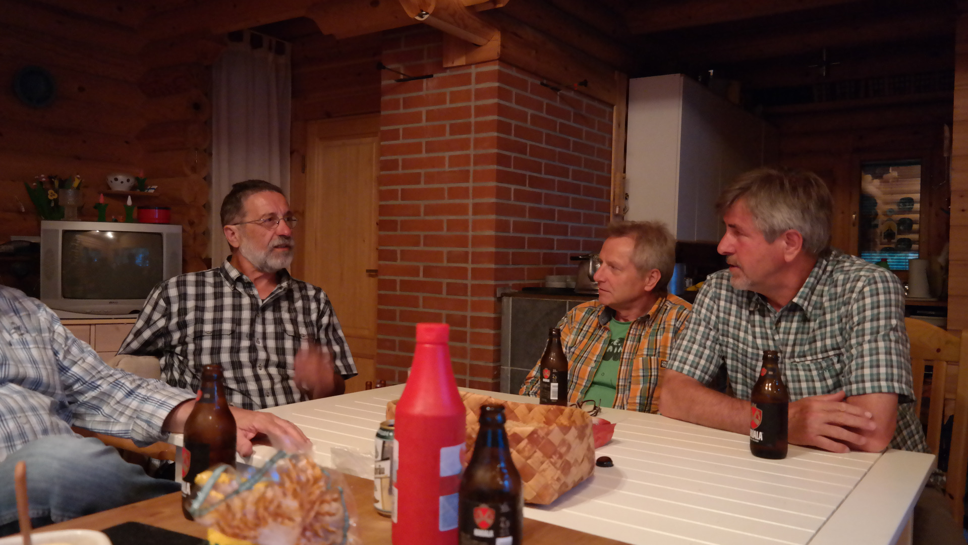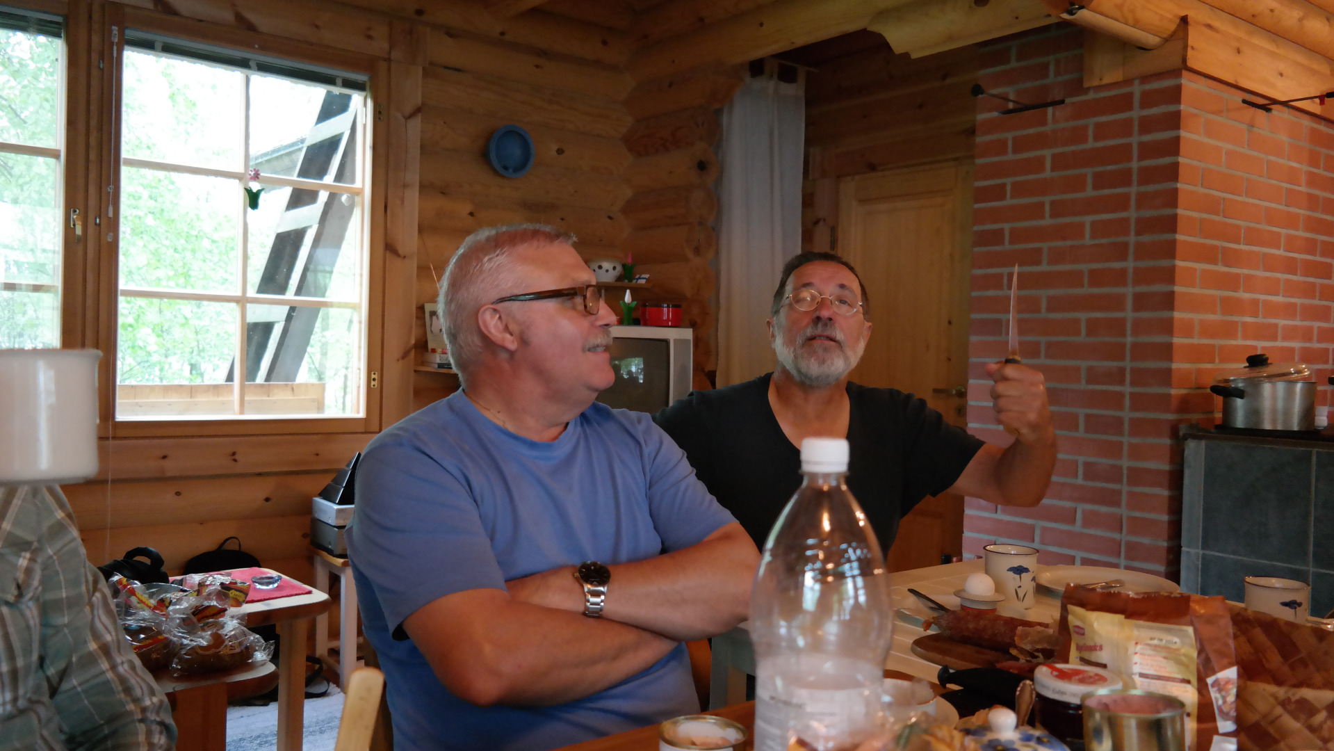 Wahnsinn, diese Reise, die uns Norbert (Fred) organisiert hatte. Von Frankfurt ging es jeweils mit dem Flugzeug zunächst bis nach Helsinki und anschließend weiter nach Joensuu. Dort wurden wir von unserem Gastgeber (Hans der Große) mit zwei Autos auf seine Halbinsel (Ahvenlahti) mit zwei großen Hütten gebracht. Für unseren Aufenthalt hatten wir ein Auto zur Verfügung, da der nächste Lebensmittelladen mehr als 20 km weit weg war. Darüber hinaus hatten wir zwei Ruderboote, mit welchen wir eine weitere Halbinsel unseres Gastgebers in etwa 20 Minuten zu einem Grillabend erreichten.