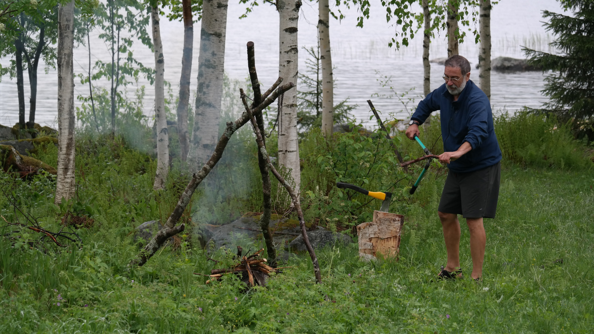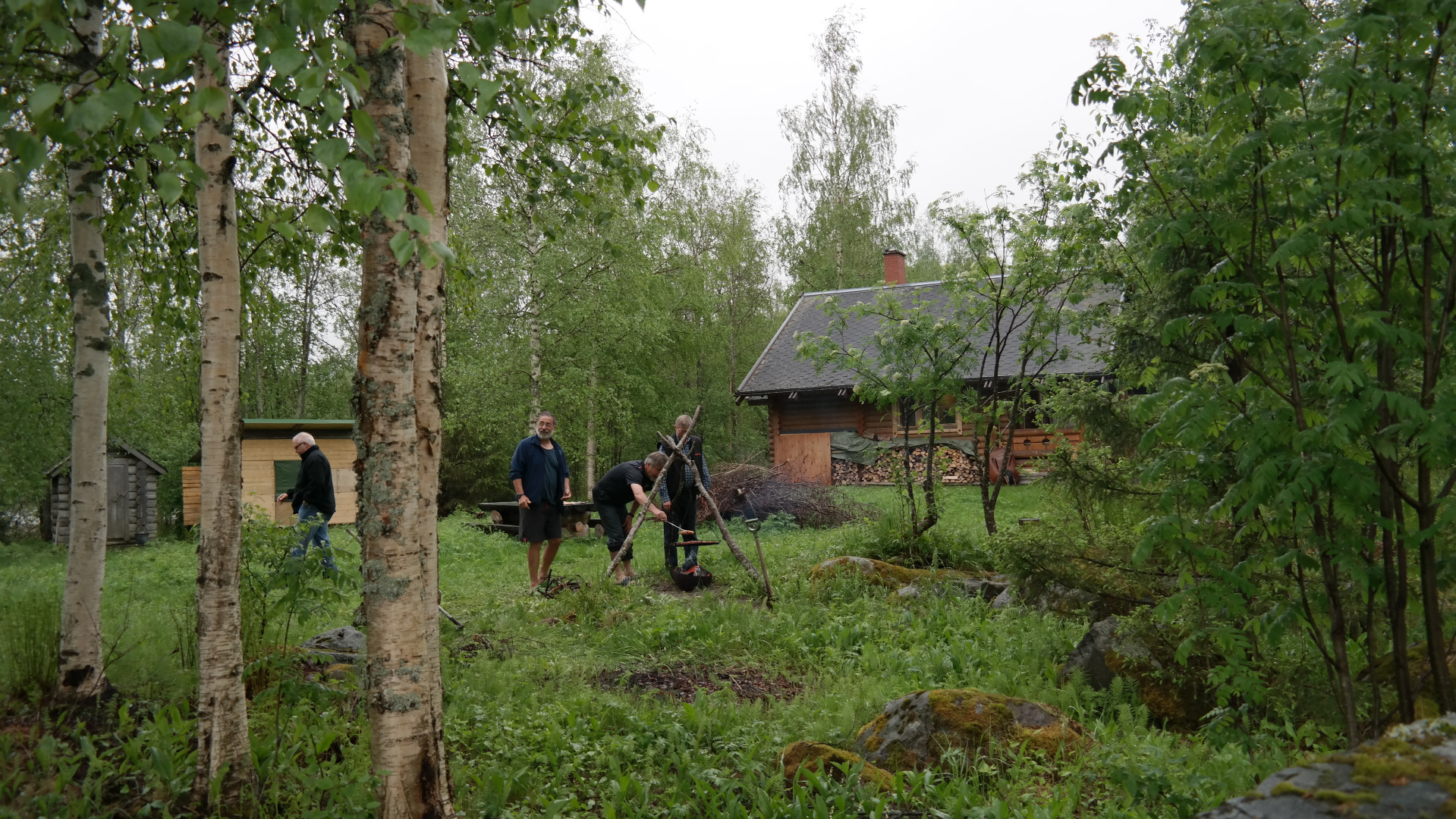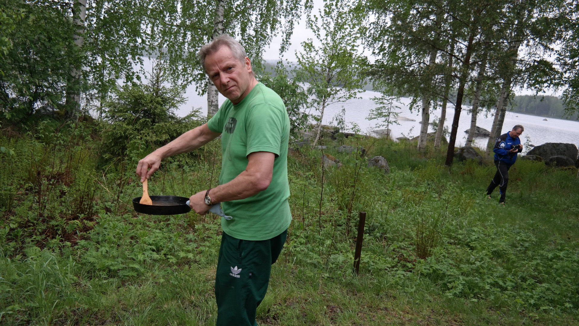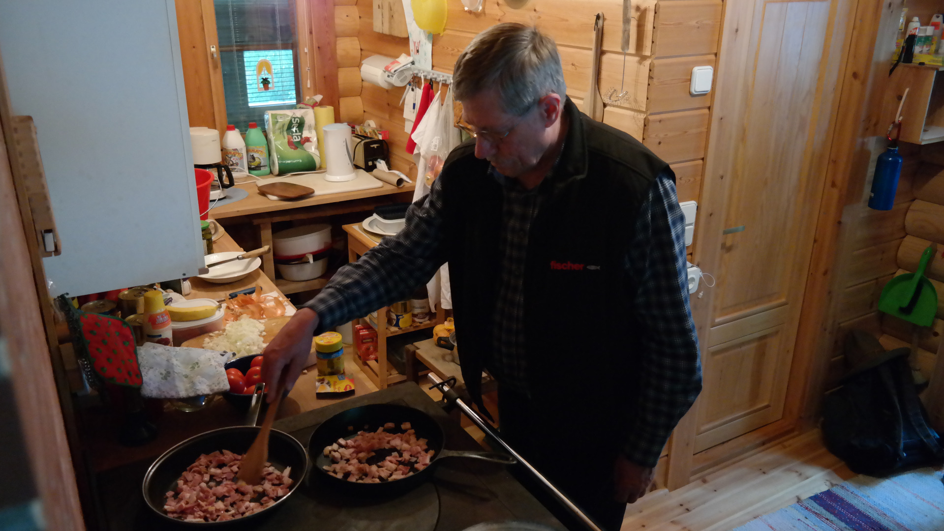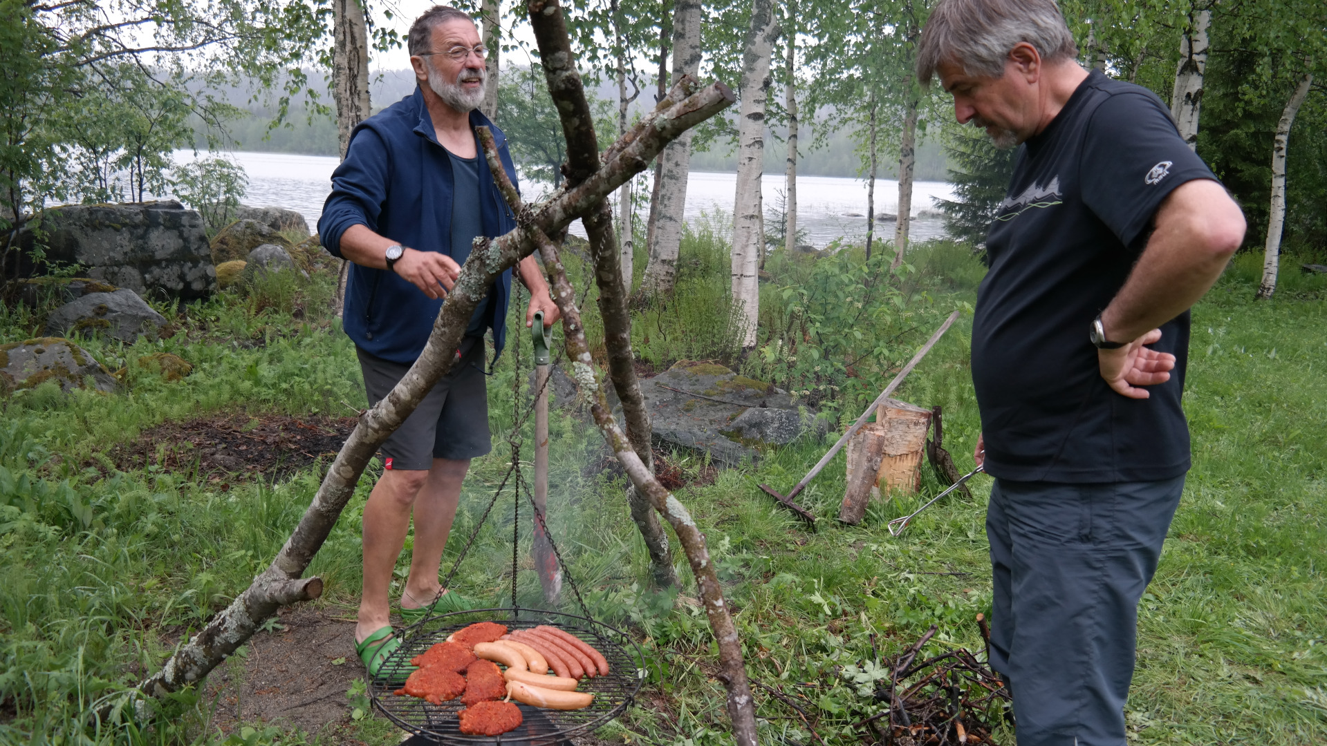 Wahnsinn, diese Reise, die uns Norbert (Fred) organisiert hatte. Von Frankfurt ging es jeweils mit dem Flugzeug zunächst bis nach Helsinki und anschließend weiter nach Joensuu. Dort wurden wir von unserem Gastgeber (Hans der Große) mit zwei Autos auf seine Halbinsel (Ahvenlahti) mit zwei großen Hütten gebracht. Für unseren Aufenthalt hatten wir ein Auto zur Verfügung, da der nächste Lebensmittelladen mehr als 20 km weit weg war. Darüber hinaus hatten wir zwei Ruderboote, mit welchen wir eine weitere Halbinsel unseres Gastgebers in etwa 20 Minuten zu einem Grillabend erreichten.